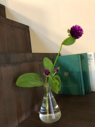 まるくて可愛らしい千日紅(せんにちこう)。 長く千日も⁈花が楽しめるのが由来だそう。 でも、花だと思っていた部分は苞葉。 中に小さな黄色い花がかくれていました。 なんてひかえめなお花。 真実はわからないものです。 きれいだし、ま、いっか。 これまた…